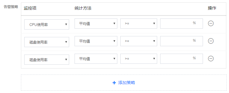 - 告警策略?用于設置監控項的數據統計方法和告警閾值,所有監控項均支持告警規則的設置。