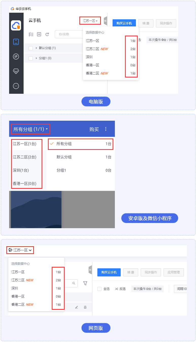 - 電腦版:支持Windows和MacOS系統,具備同步操作功能,適合大批量云手機便捷操作。