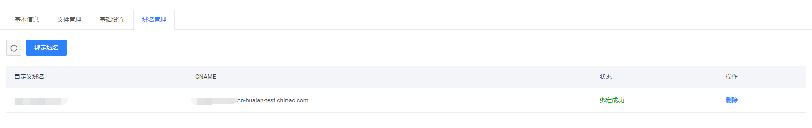 要正式使用前需(xu)要將綁定(ding)域(yu)名CNAME解析(xi)至域(yu)名管理頁面提(ti)供的CNAME域(yu)名上(shang),檢測通過后綁定(ding)狀態會變(bian)更為【綁定(ding)成功】。