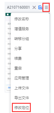 - 右側面板云手機列表上,在準備操作的云手機的更多操作列表里,點擊【修改定位】按鈕彈出修改窗口,如圖: