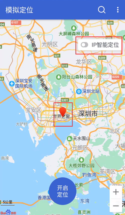 - 在修改定位窗口可以查看當前云手機的IP、可以在地圖上選擇定位以及支持開啟IP智能定位(定位將根據云手機IP所在地進行改變),如圖: