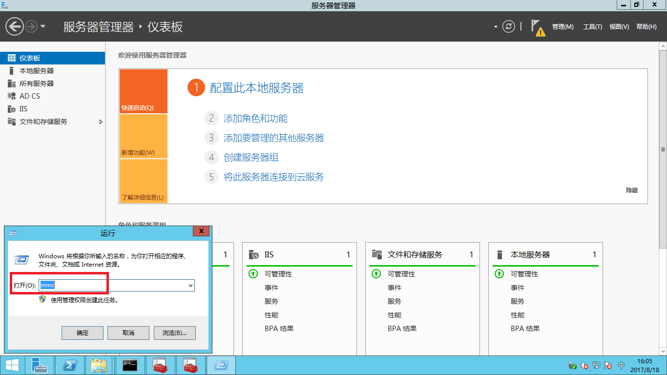 - 輸入mmc,點擊確定,進入到控制臺。