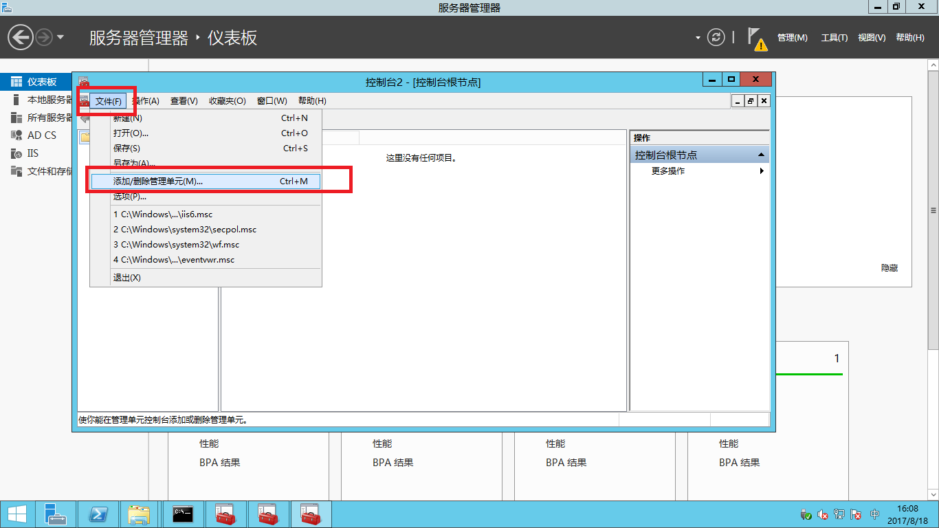 - 單擊文件,選擇添加/刪除管理單元。
