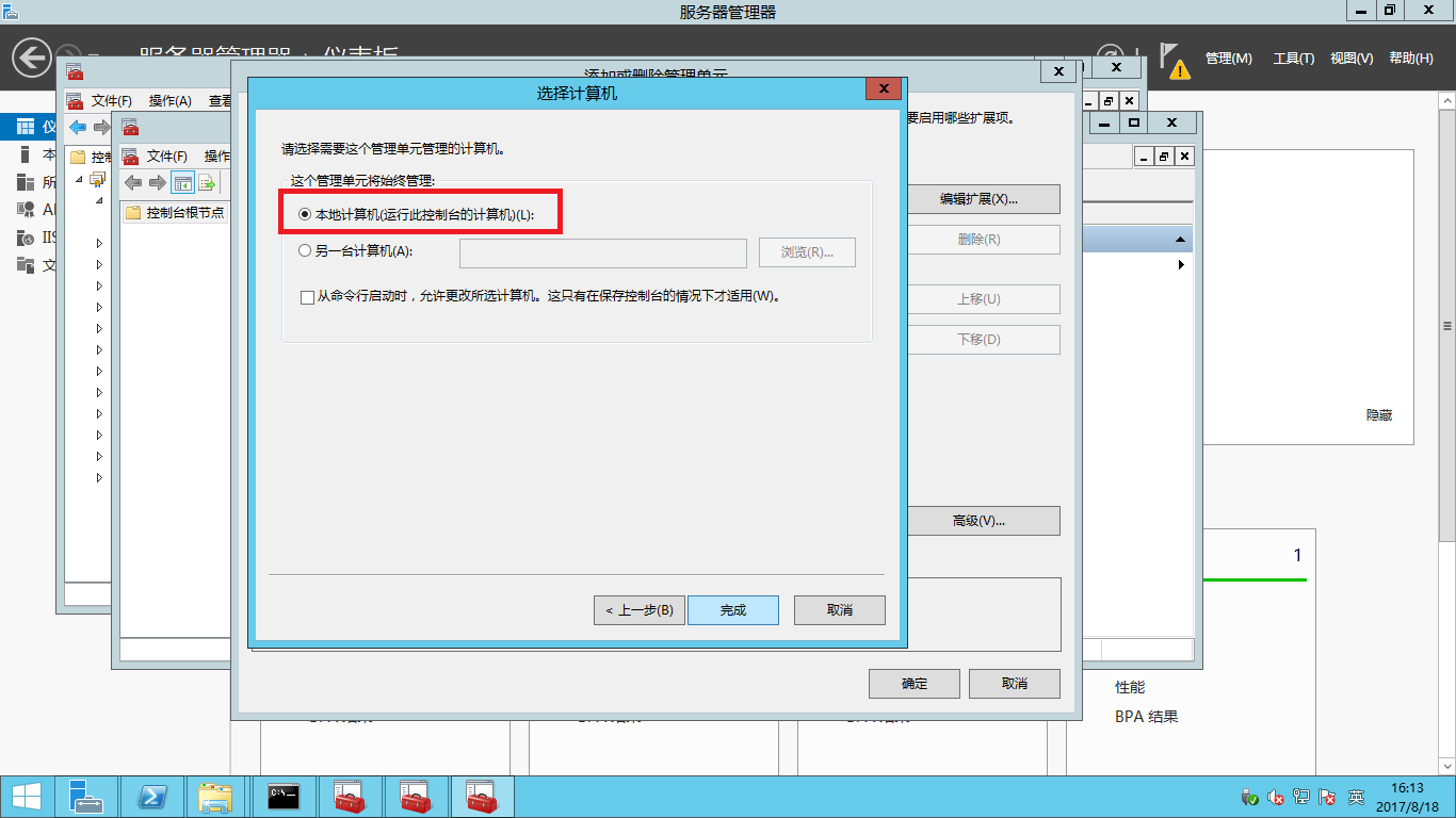 - 默認選擇本地計算機,點擊完成。